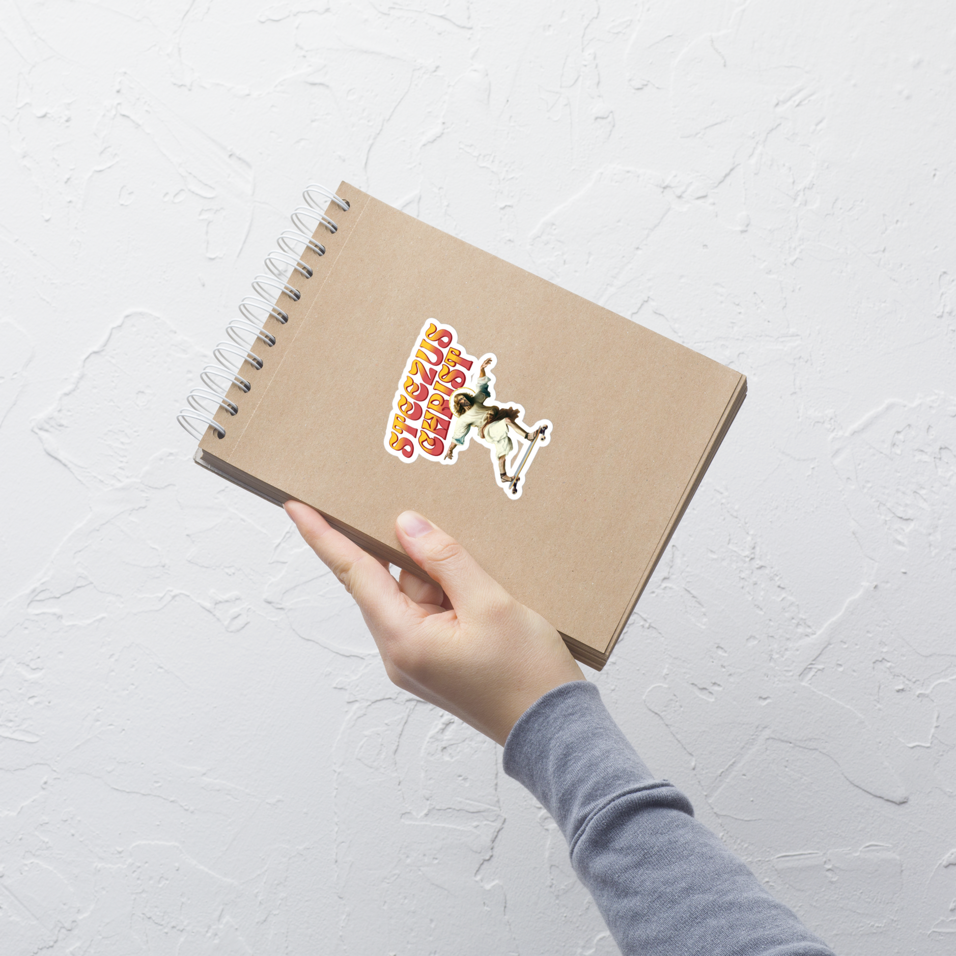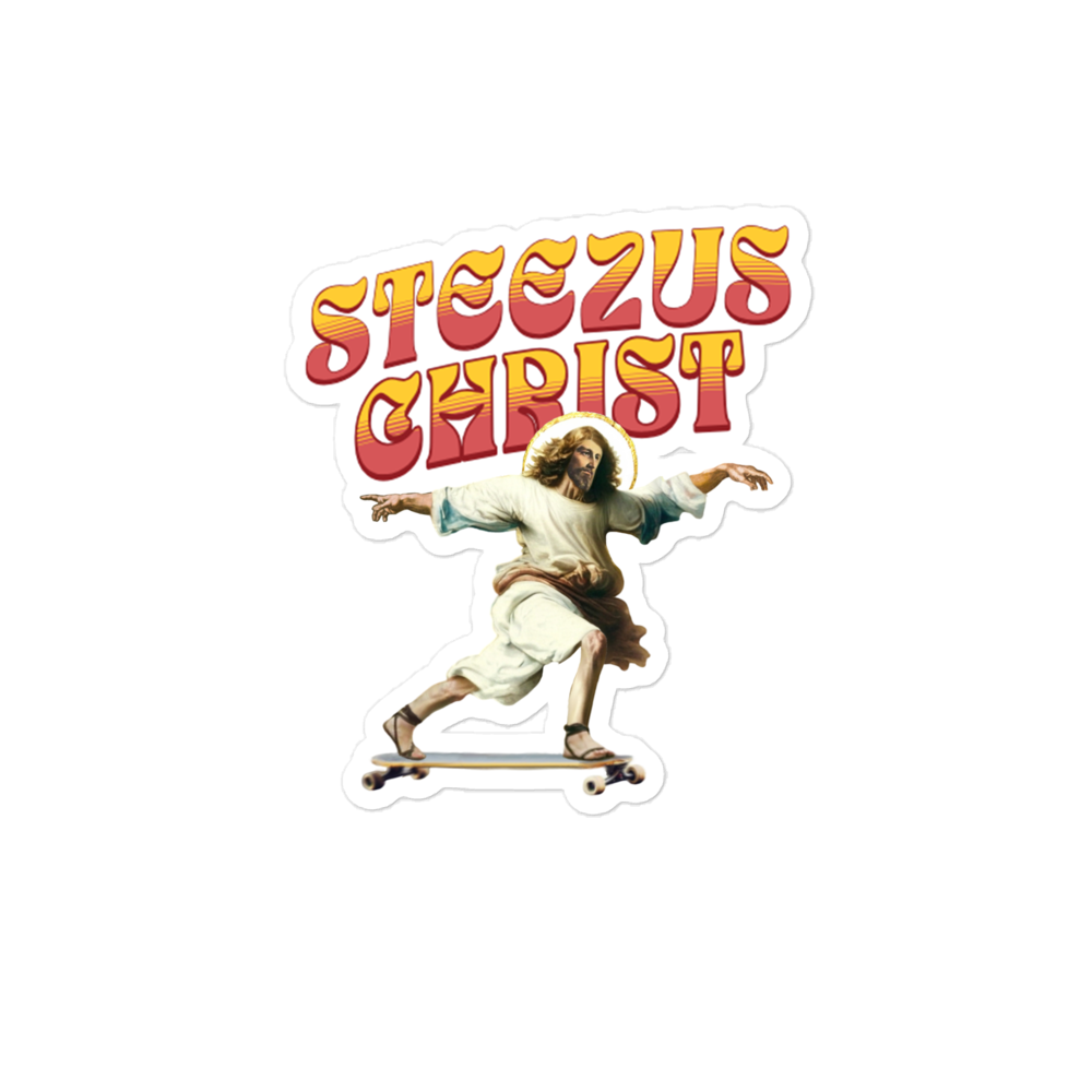 "Steezus vowed to create an object that would serve as a reminder to his followers everywhere. An object that could be stuck to any surface and would last the test of time. From this, the steeziest of stickers was born."